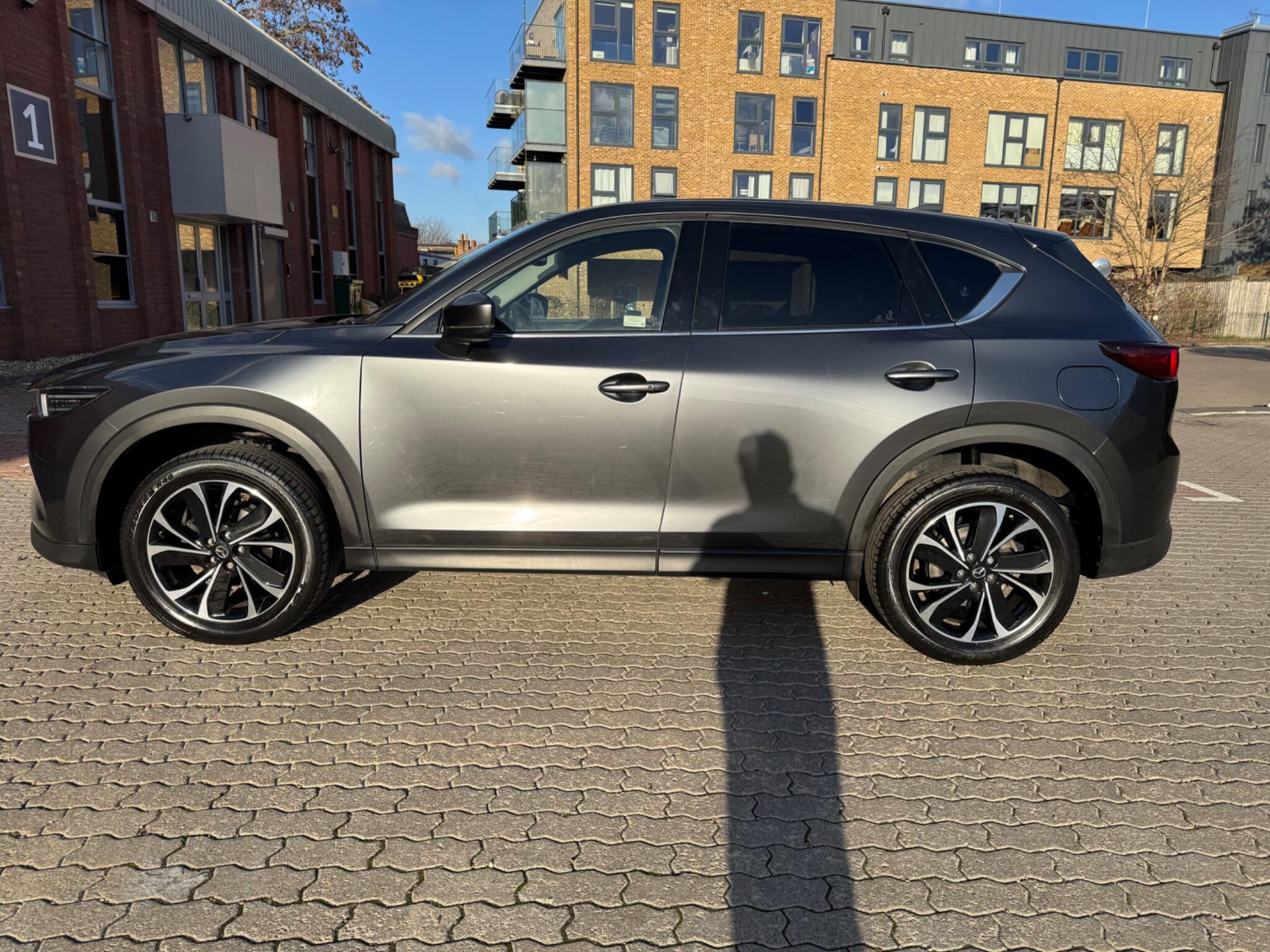 This 2023 Mazda CX-5 e-SKYACTIV G Exclusive-Line presents an exceptional ownership proposition with its remarkably low mileage of just 13,638 miles, a testament to its careful single owner. This Euro 6 compliant model boasts a smooth 2.0 litre petrol engine and comes equipped with the desirable Exclusive-Line trim. For your convenience and comfort, it features dual zone climate controlled air conditioning with rear vents, smart keyless entry, and a comprehensive parking assistance system including front and rear parking sensors along with a reversing camera. The benefits of choosing this particular CX-5 extend beyond its impressive specifications. Its low insurance group rating means more affordable running costs, while the generous boot space ensures practicality for all your needs. These advantages, combined with its pristine condition and single owner history, clearly set this Mazda CX-5 apart from other vehicles in its class, offering a superior driving and ownership experience.