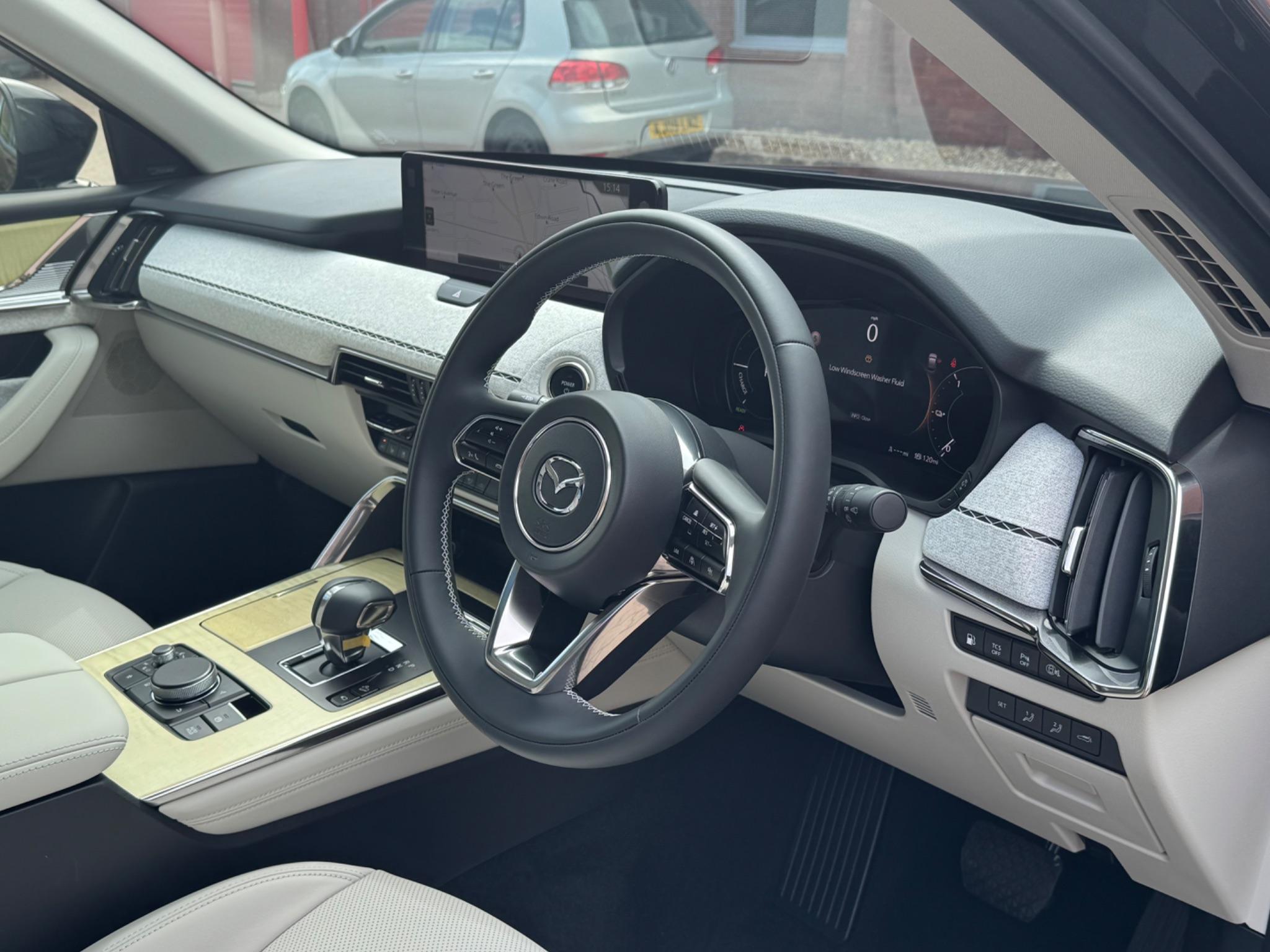 With only 100 miles on the clock, this 2025 Mazda CX-60 e-SKYACTIV Takumi presents as new. This Euro 6 compliant, four-wheel drive vehicle is equipped with a 2.5L Petrol Plug-in Hybrid engine and comes in the Takumi trim. The vehicle benefits from having had only one owner from new. Enjoy the convenience of Smart Keyless Entry and Dusk-Sensing Lights, enhancing your driving experience. Safety is paramount, with Blind Spot Monitoring and Rear Cross Traffic Alert, including Blind Spot Assistance. Passengers will appreciate the comfort of Heated Outer Rear Seats. The Mazda Driver Personalisation System, complete with memory seats, ensures a tailored driving experience every time. The Mazda CX-60 boasts a large boot, making it ideal for families or anyone needing extra storage space. Acceleration from 0-62mph takes just 5.8 seconds, demonstrating its impressive performance capabilities when compared to similar vehicles. With a towing weight of 2500 kg, this vehicle is well-suited for various lifestyle needs.