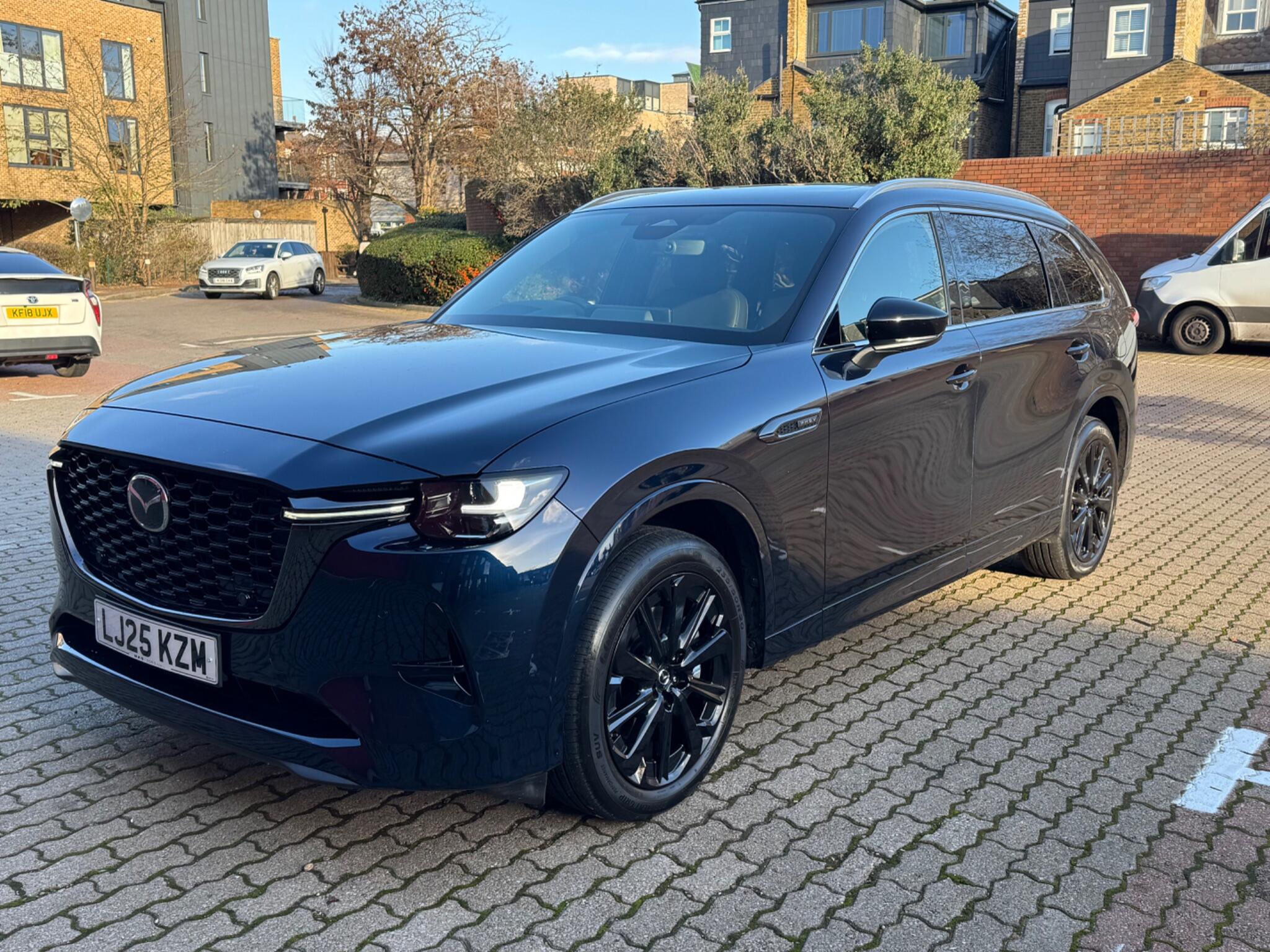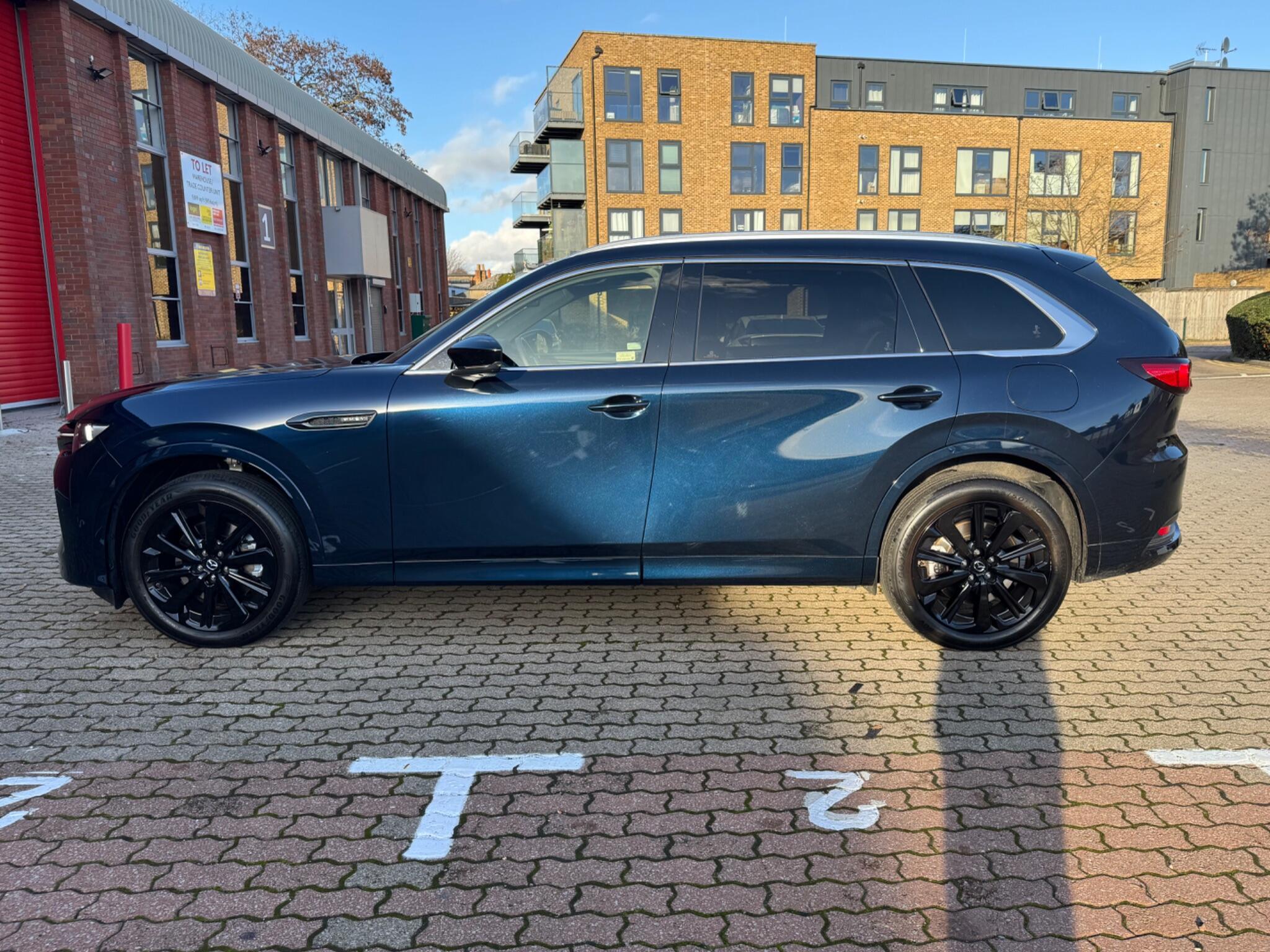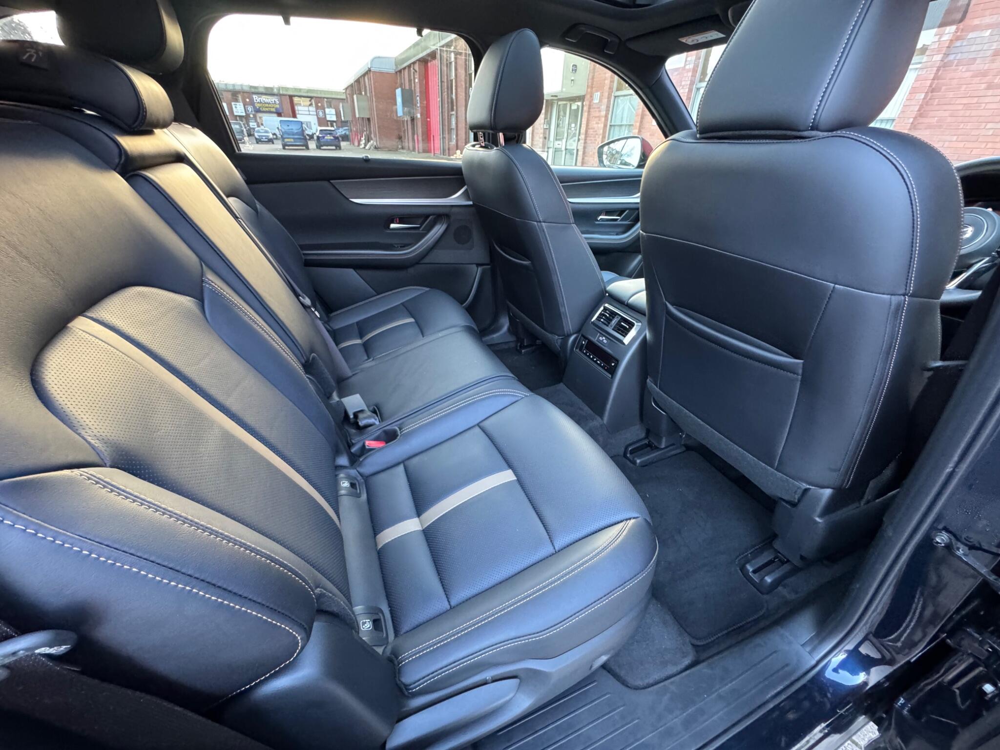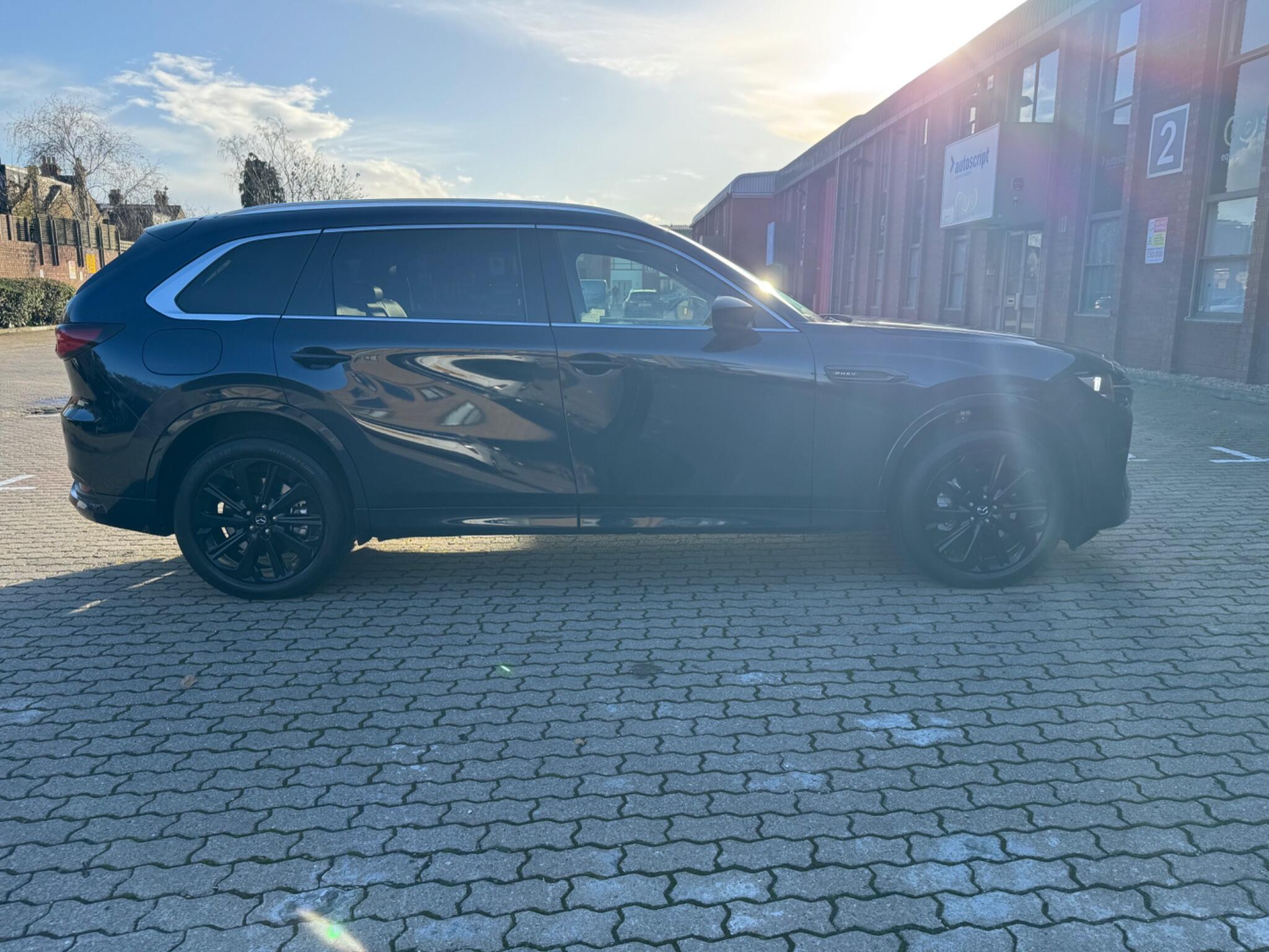 This 2025 Mazda CX-80 e-SKYACTIV Homura Plus presents a unique opportunity with its exceptionally low mileage of just 2847 miles, having had only one owner since new. This Four Wheel Drive, 7 seat SUV is powered by a 2.5L Petrol Plug-in Hybrid engine, meeting Euro 6 emission standards. It comes equipped with Smart Keyless Entry, front and rear parking sensors with parking assistance, and a panoramic sunroof. Inside, you will find heated front seats with three stage settings, alongside wireless Apple CarPlay and Android Auto for seamless connectivity. The CX-80 Homura Plus offers a generous boot space, making it ideal for families and adventurers alike. Its towing weight of 2500 kg provides excellent capability for carrying trailers or caravans. These features, combined with its advanced hybrid technology and luxurious interior appointments, position this Mazda CX-80 as a superior choice compared to other vehicles in its class, offering both efficiency and practicality for everyday driving and longer journeys.