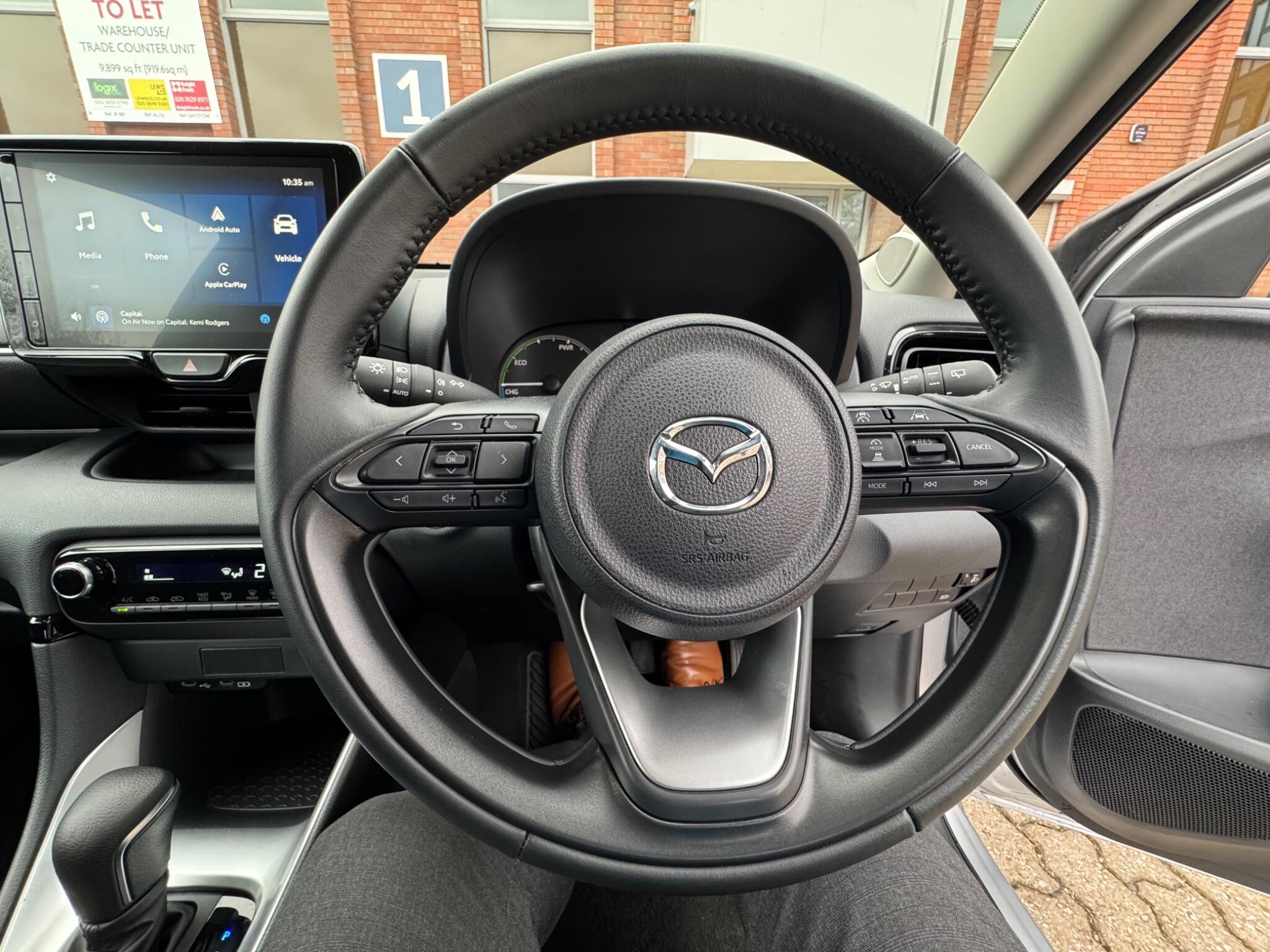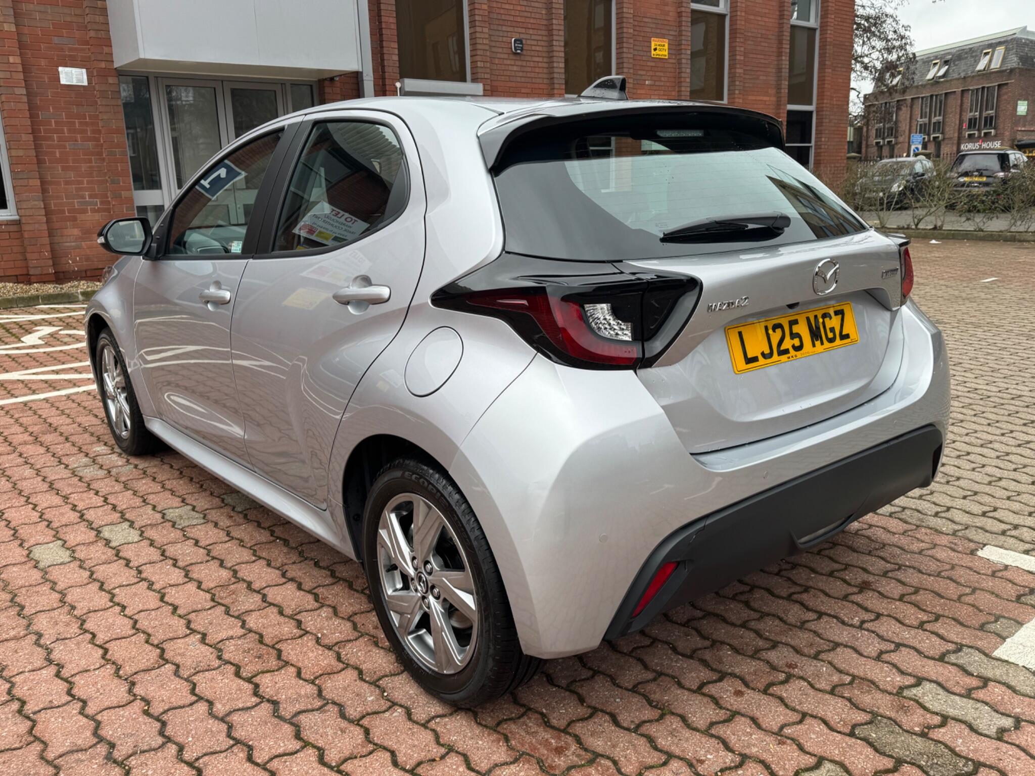 The car will be ready for sale after the 02/02/2026. This 2025 Mazda2 HYBRID h Exclusive Line presents a remarkable opportunity with its exceptionally low mileage of just 5000 miles, a testament to its careful single owner. This Euro 6 compliant model boasts a 1.5L Petrol Hybrid engine, offering an impressive fuel economy of 74 mpg and low CO2 emissions. The Exclusive Line trim ensures a refined driving experience, enhanced by a suite of advanced features. You'll appreciate the convenience of Smart Keyless Entry and the integrated Bluetooth system for seamless connectivity. Parking is made effortless with front and rear parking sensors, complemented by a reversing camera and parking assistance. Safety is paramount, with Blind Spot Monitoring featuring Parking Support Brake Function for rear crossing vehicles, providing an extra layer of security. These highlights demonstrate how this Mazda2 HYBRID stands out for its efficiency, technology, and safety.