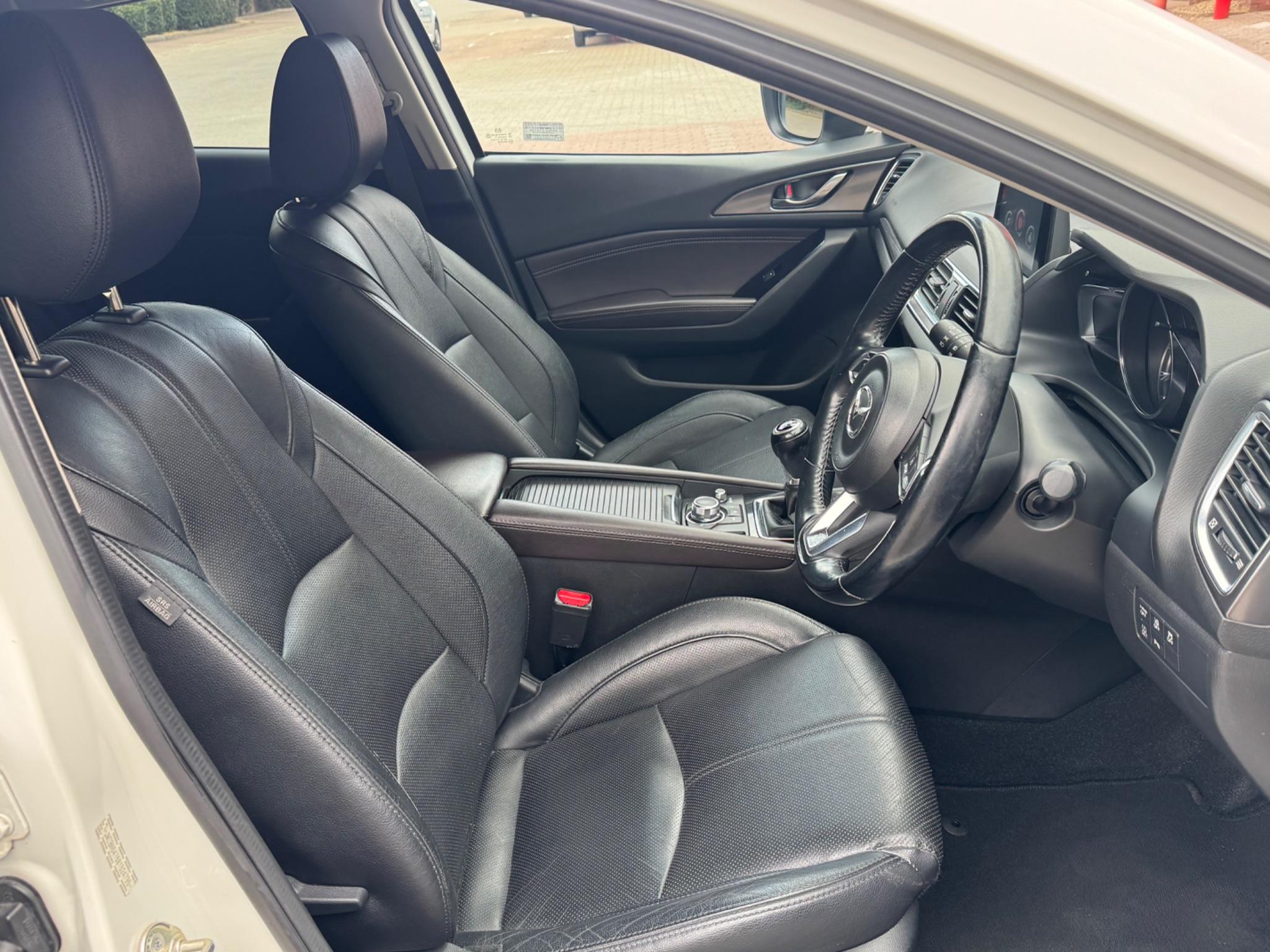 The 2017 Mazda Mazda3 SKYACTIV-G Sport Nav is a stylish hatchback that combines practicality with a sporty driving experience. Equipped with a responsive 2.0L petrol engine and a smooth manual transmission, this Euro 6 compliant Mazda3 delivers a balance of performance and efficiency. The Sport Nav trim adds a touch of luxury and convenience, with features like the heated steering wheel and heated front seats, perfect for those chilly mornings. The black leather interior adds a premium feel, while the driver's power-adjustable seat ensures a comfortable driving position. The advanced Safety Pack includes Blind Spot Assistance and LED headlights, enhancing safety and visibility on the road. The Mazda3 boasts a large boot, making it more practical than other similar vehicles in its class. The responsive 2.0L petrol engine allows it to accelerate from 0-62mph in just 8.2 seconds, making it quicker than other similar vehicles. The Mazda3 offers a compelling blend of style, comfort, and performance.